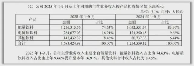 2025年前三季度,“补水啦”实现收入28.46亿元,收入占比由上年同期的9.66%增至16.91%,已成为东鹏饮料的大单品。
